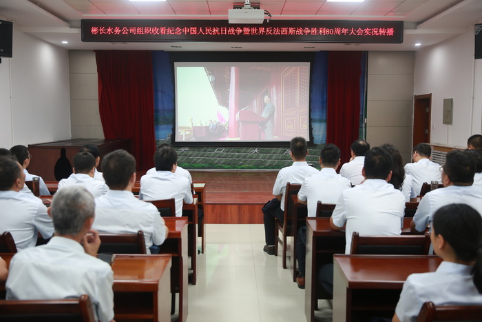2025年9月3日上午9時,紀(jì)念中國人民抗日戰(zhàn)爭暨世界反法西斯戰(zhàn)爭勝利80周年閱兵儀式在北京天安門廣場隆重舉行。為弘揚愛國主義精神,增強(qiáng)團(tuán)隊凝聚力,我公司組織全體干部職工在彬長水源基地多功能廳集中觀看了閱兵盛典實況直播。